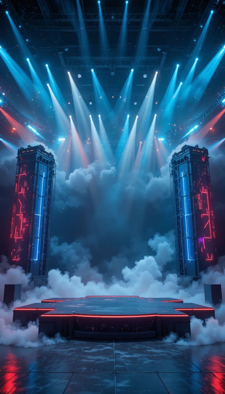 Layanan Special Effect kami, terutama Low Fog (Kabut Asap Rendah), adalah kunci untuk menciptakan atmosfer panggung yang mengesankan, seperti yang terlihat pada gambar. Mesin ini menghasilkan kabut asap tebal yang tetap berada di permukaan lantai, memberikan ilusi panggung berada di atas awan atau kabut tipis. Selain itu, efek ini sangat ampuh jika dipadukan dengan pencahayaan moving head (beam lighting) berwarna-warni. Ini akan menghasilkan pancaran cahaya yang tajam dan sinematik.